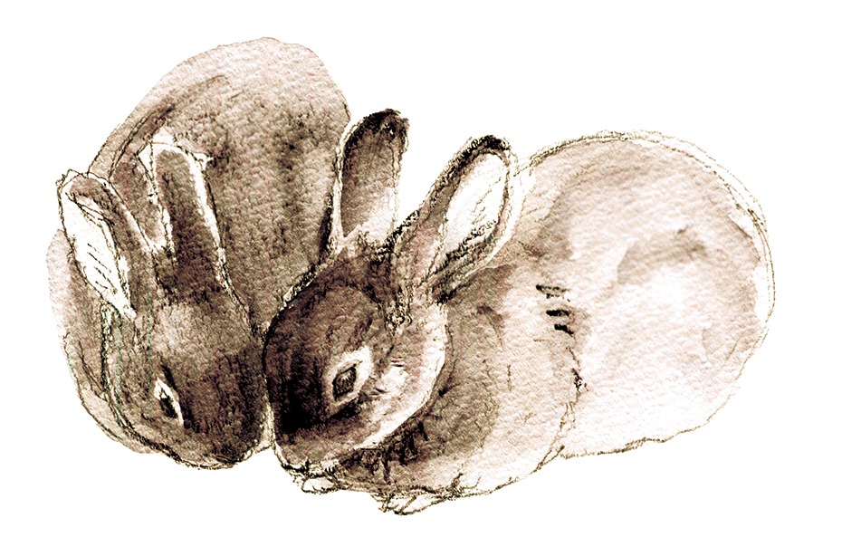 二匹の仲良しのうさぎさんと月をモチーフにした新作を考えています。