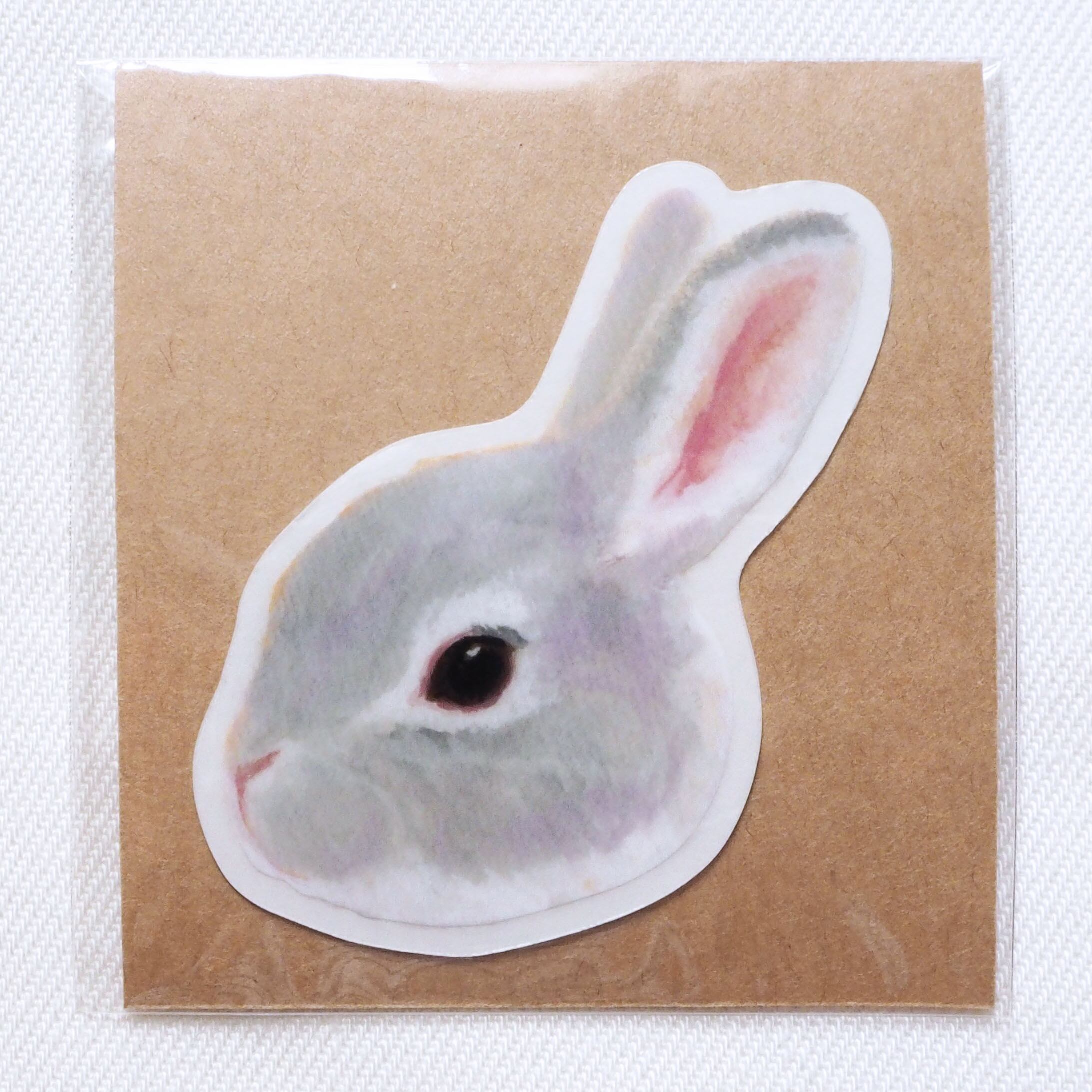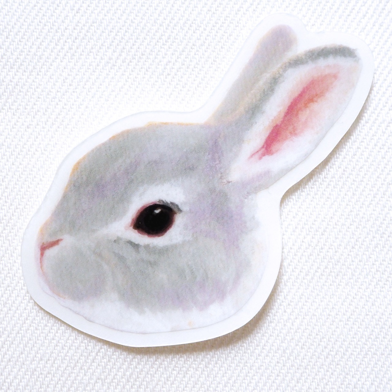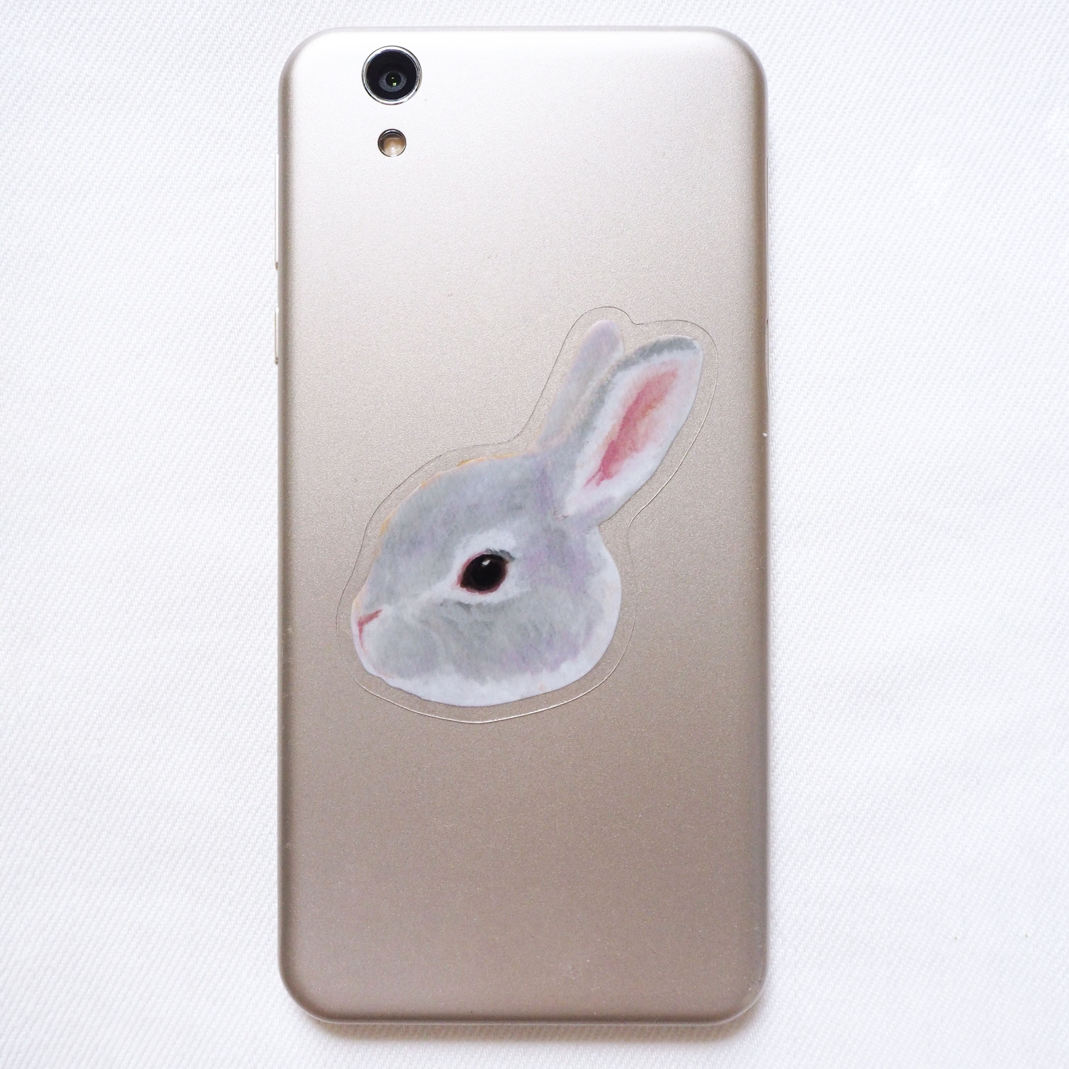 【防水ステッカー】ちょっとおすまし顔のグレーのうさぎ|屋外OK・スマホや車にも貼れる耐候仕様
