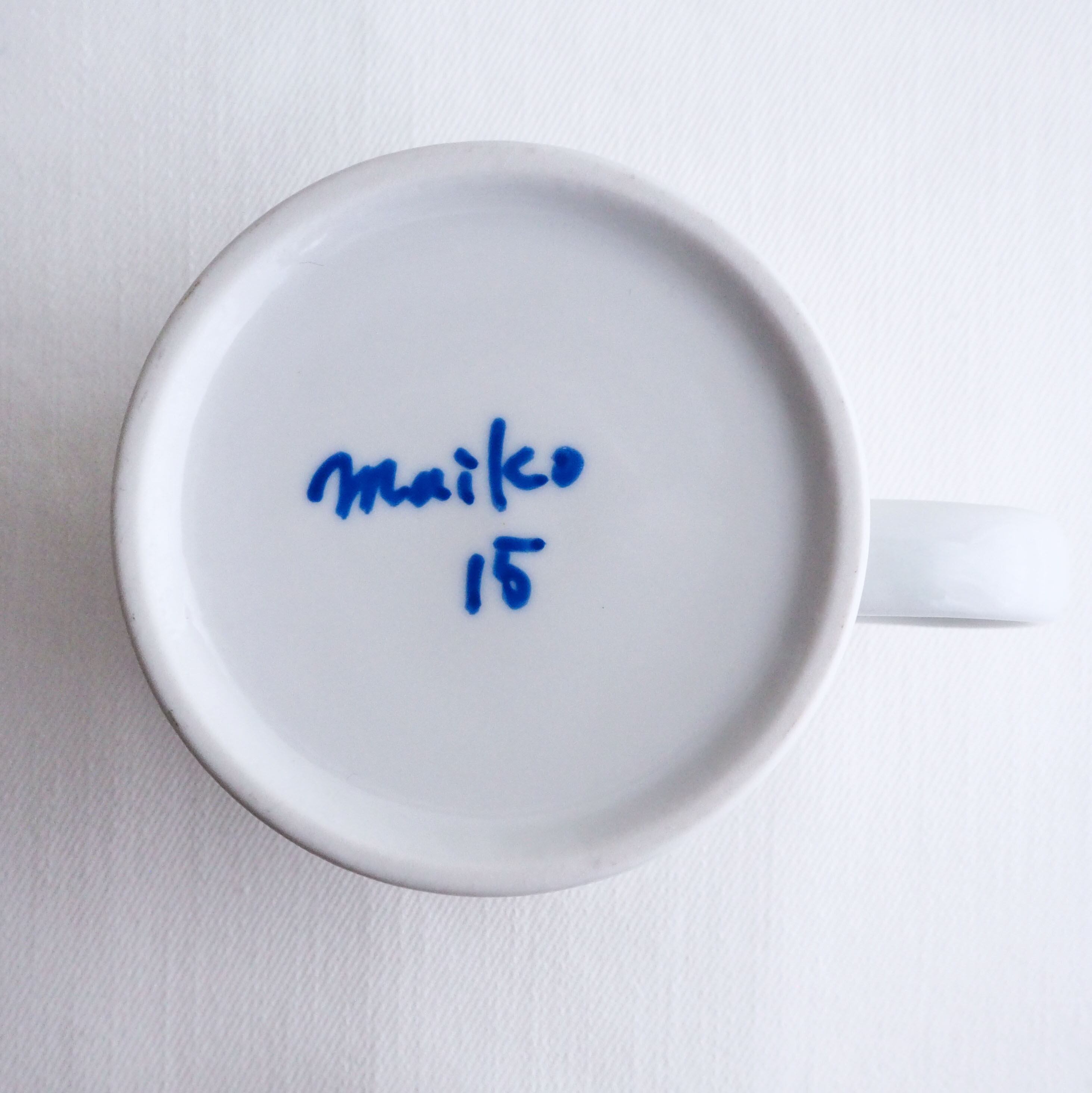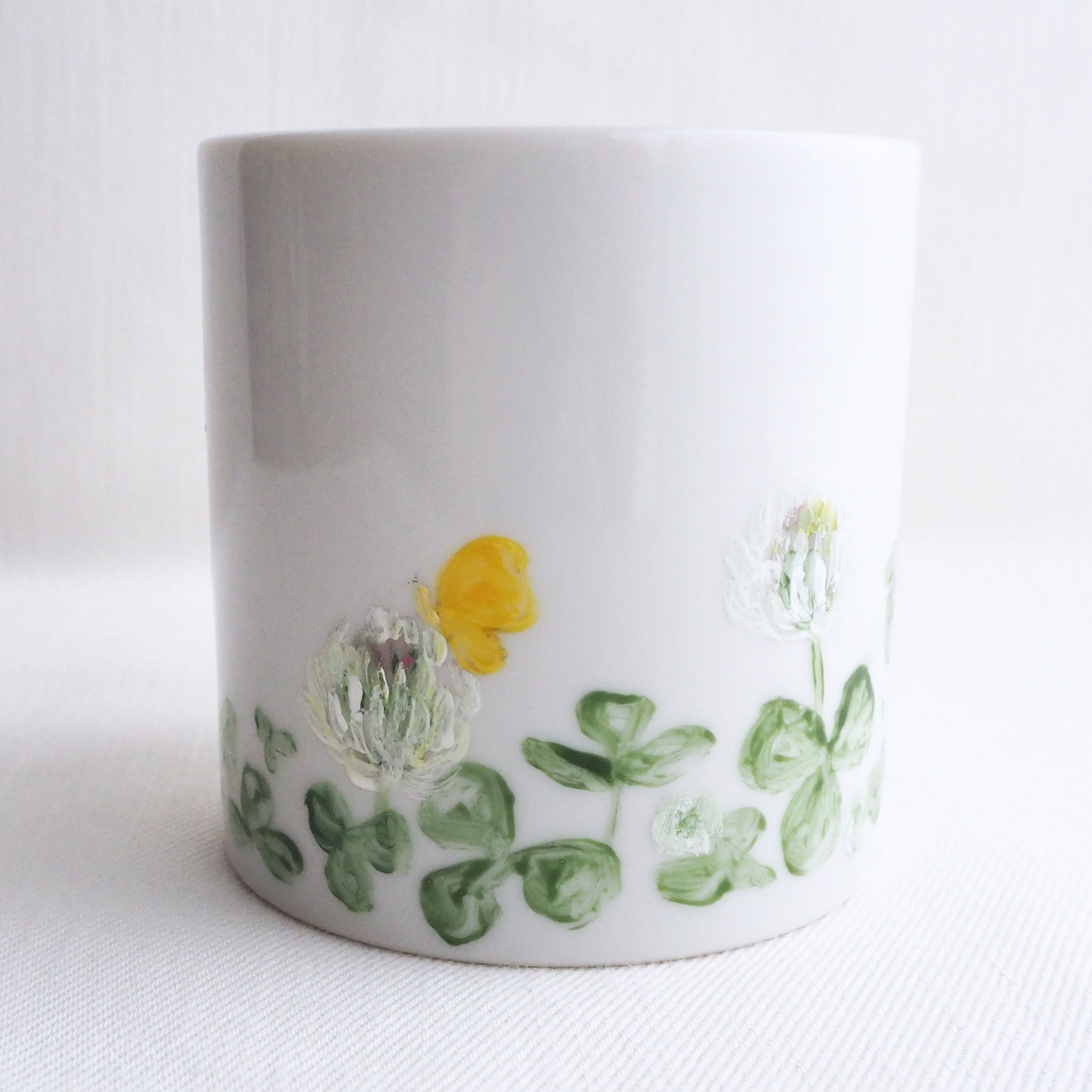このカップには、ワンポイントではなく、ぐるりと一周全体に、春の野原の物語を丁寧に描き込んでいます。