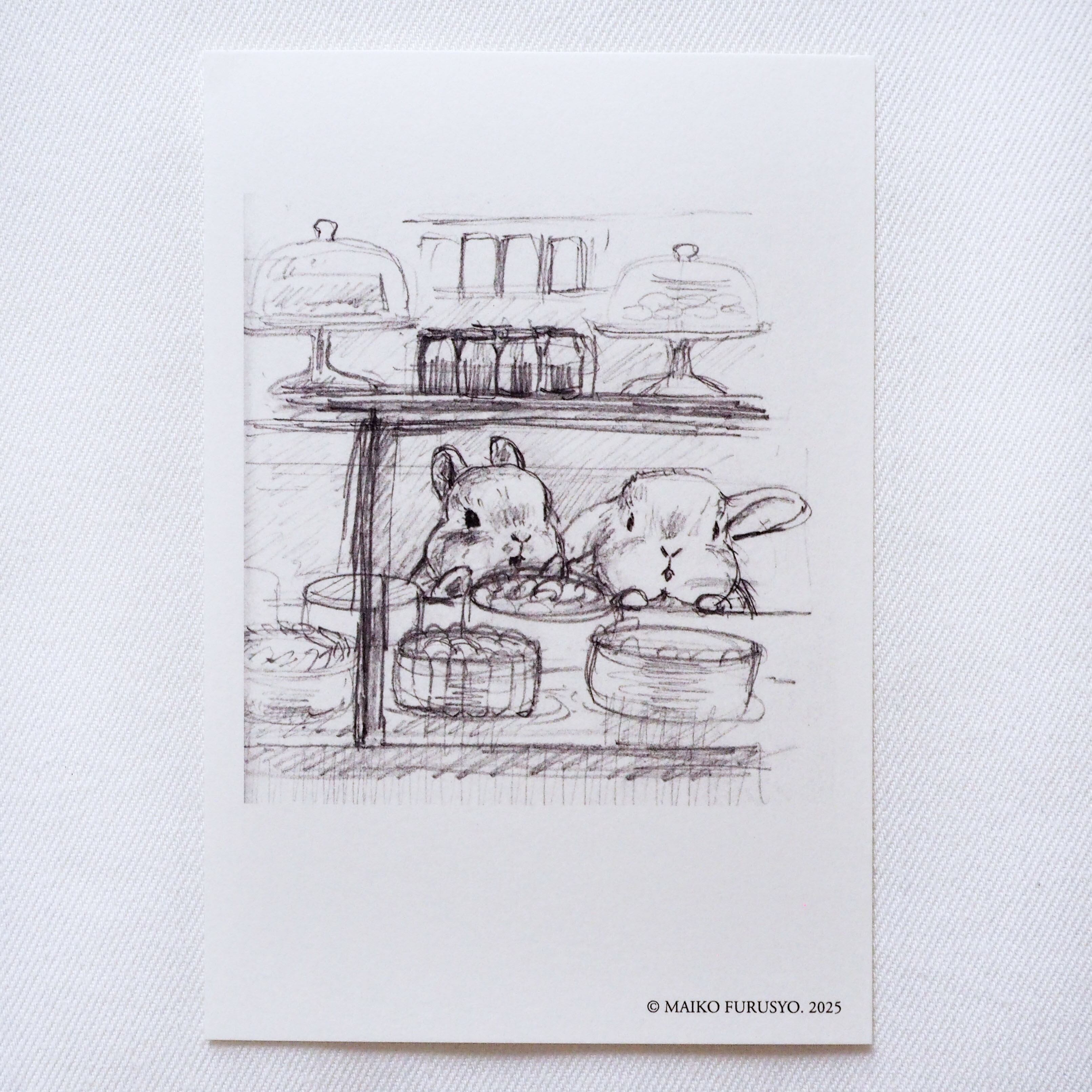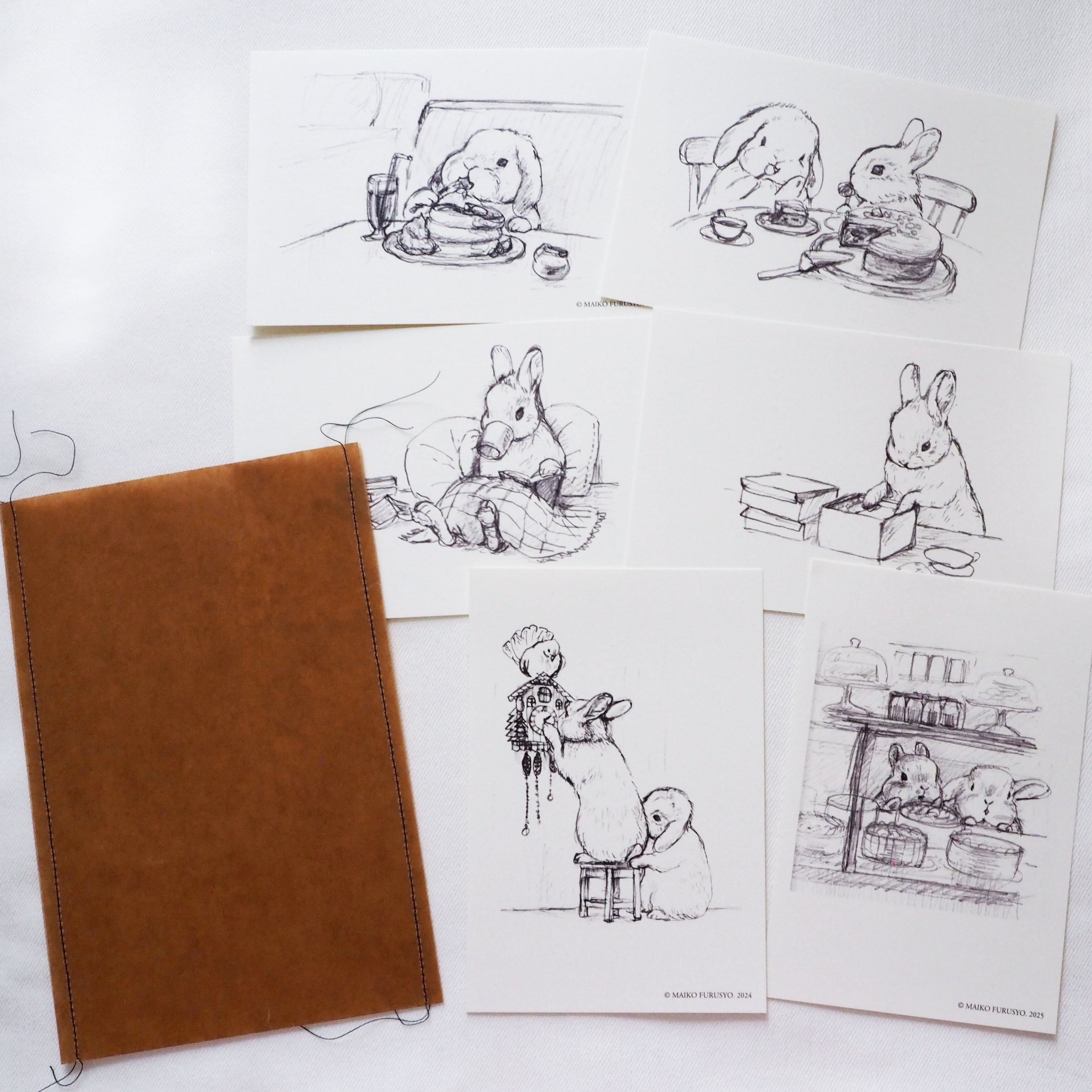 うさぎさんのスケッチカード6枚セット(ポストカードサイズ)