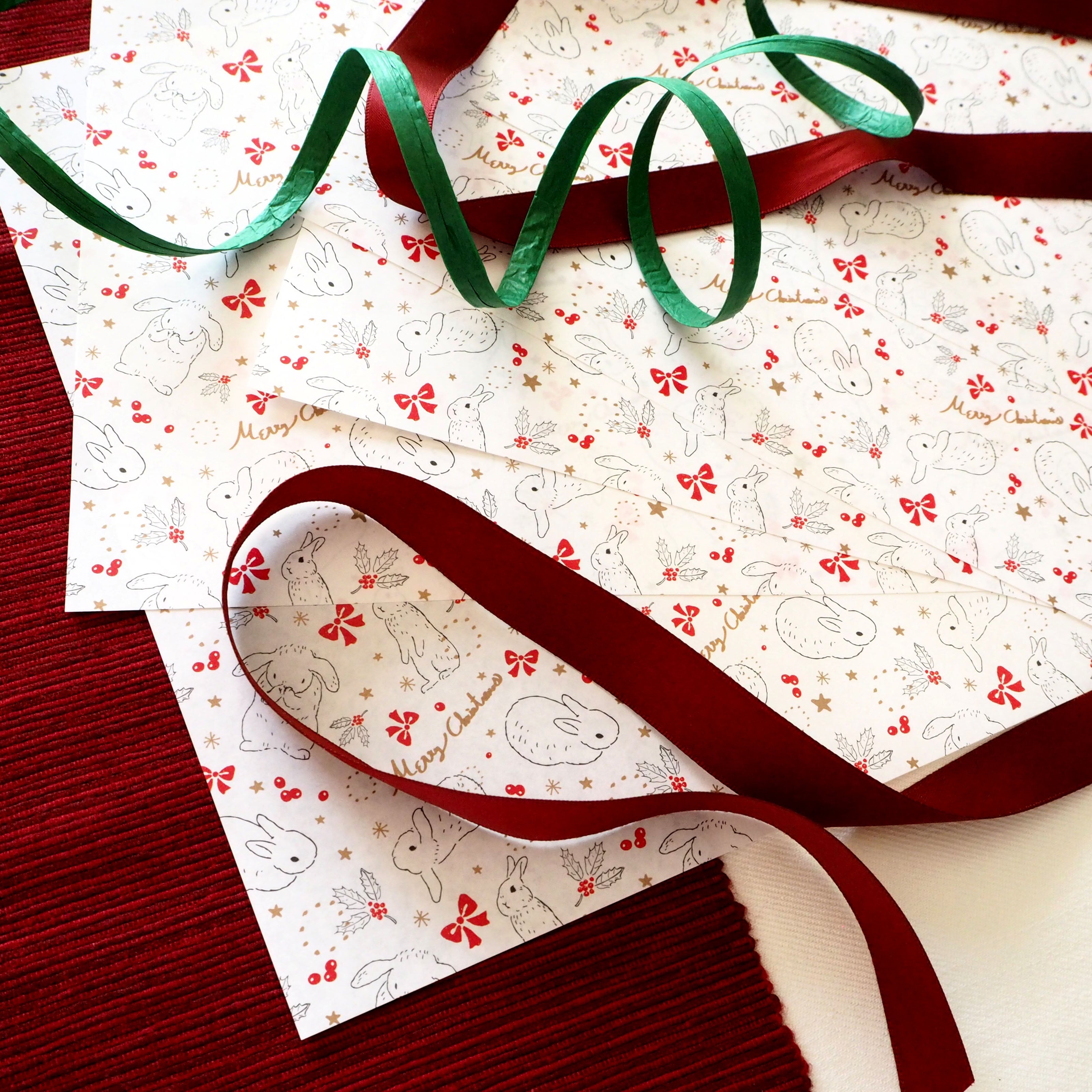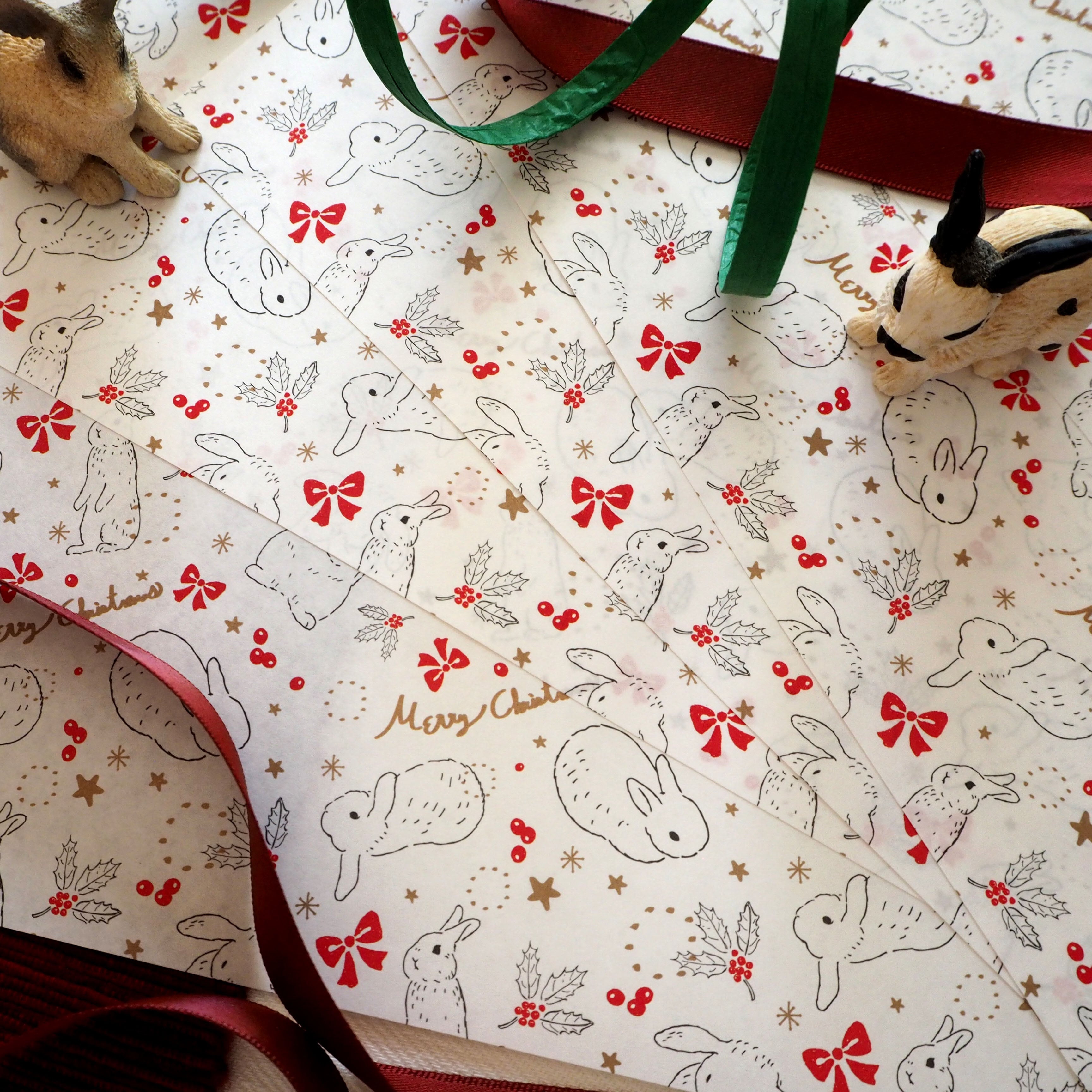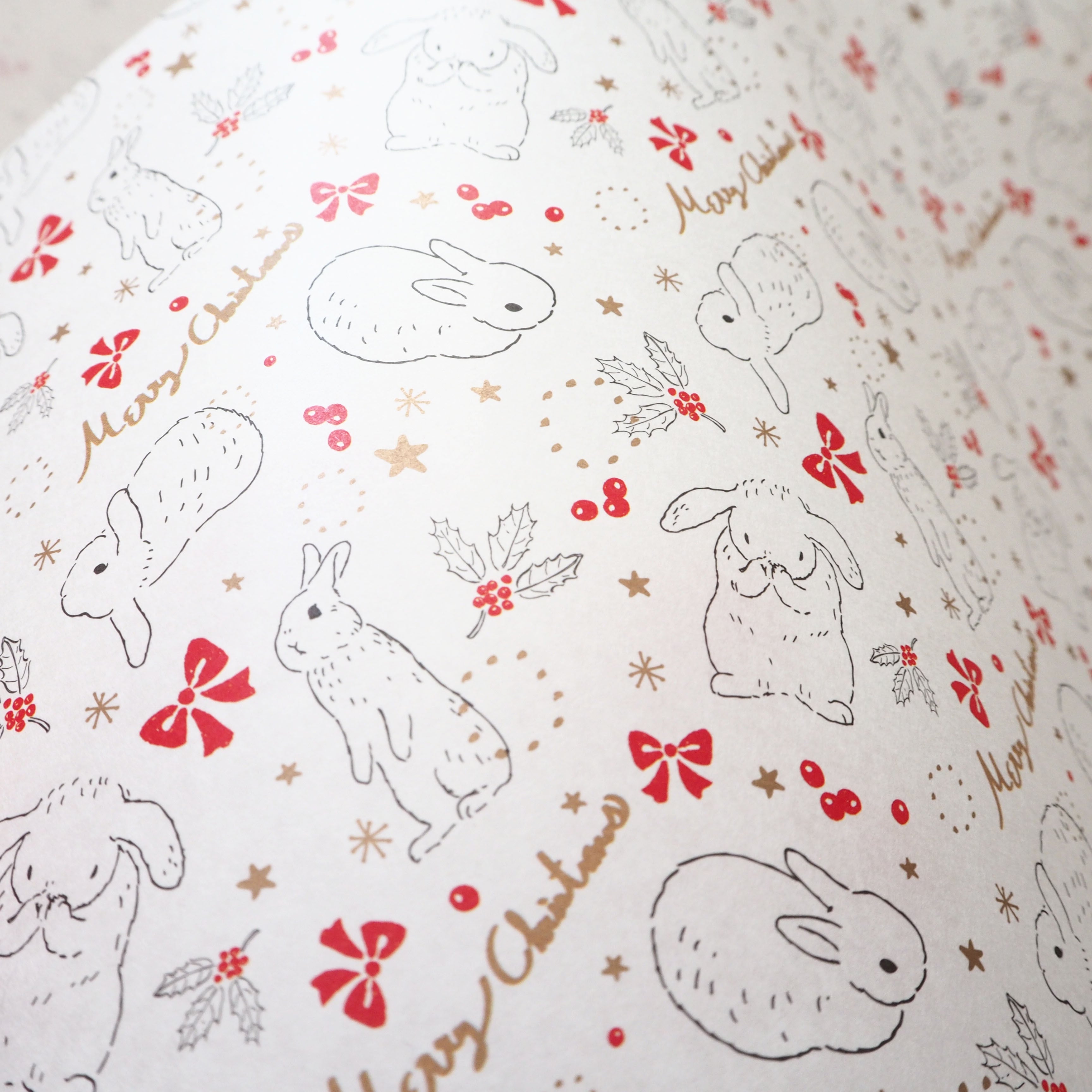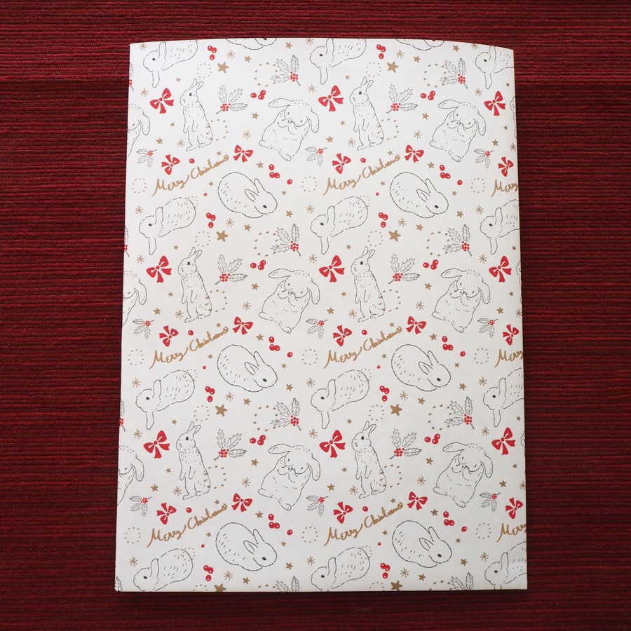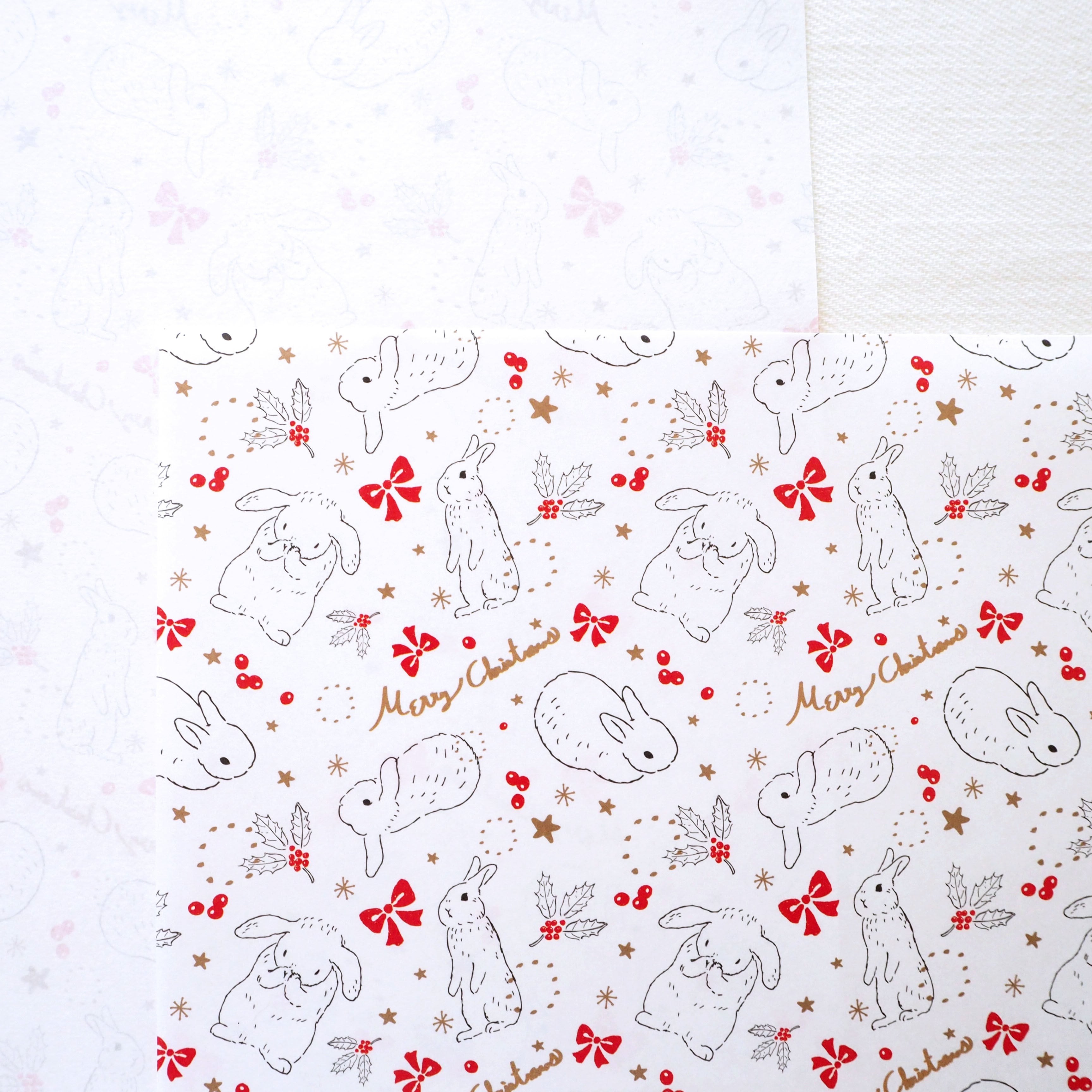 デザインペーパー(A4) Christmas Rabbits – 冬のうさぎとヒイラギのクリスマス柄 5枚セット