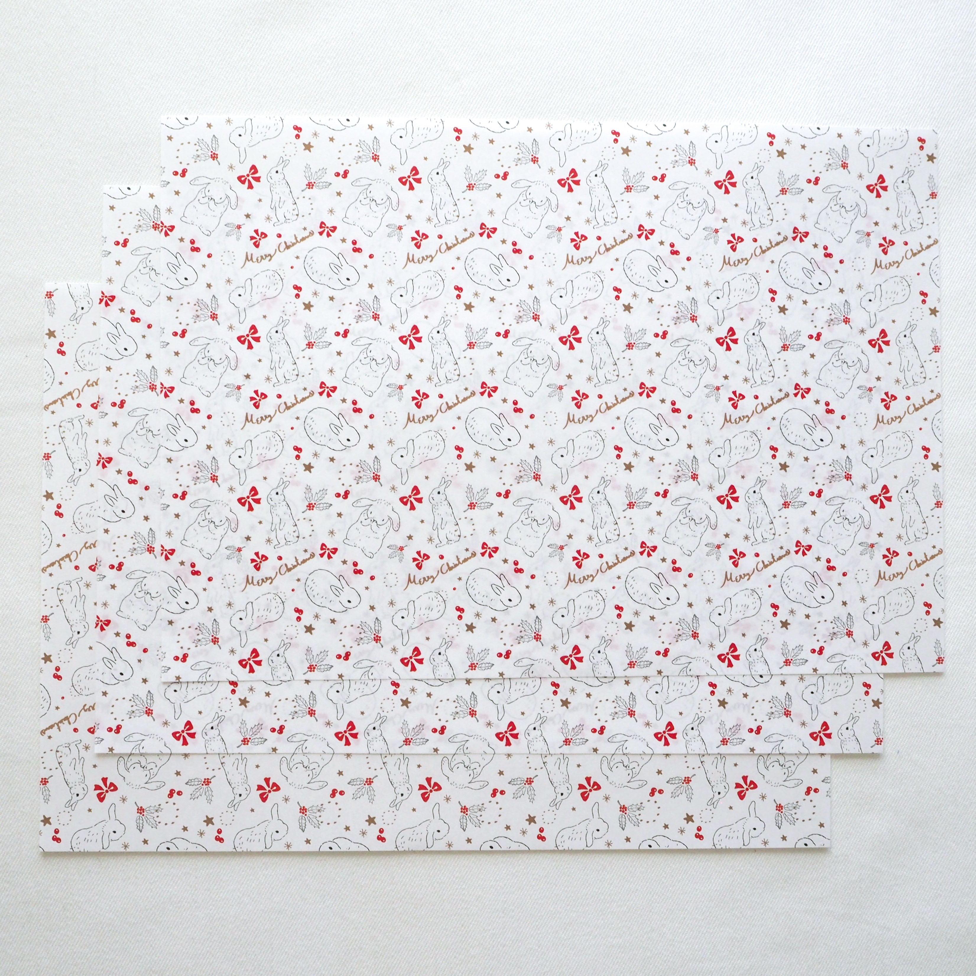 ●A4デザインペーパー(Christmas Rabbits – 冬のうさぎとヒイラギ)×3