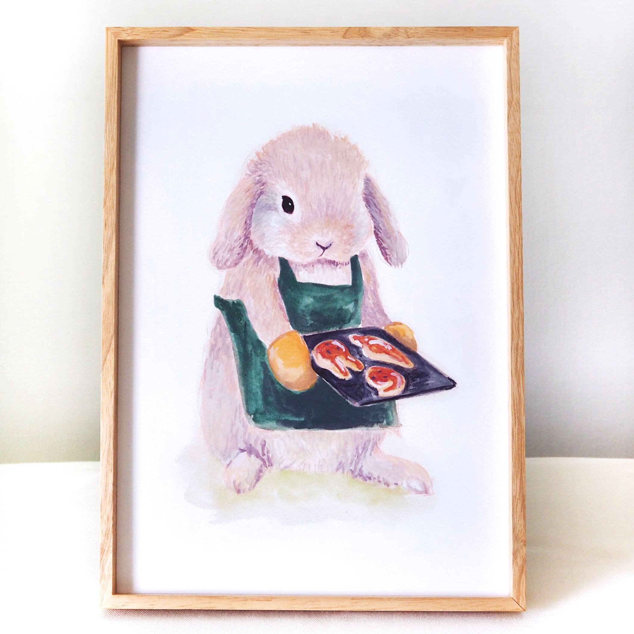 パンを焼くロップちゃん。焼きたてほやほやのパンはいかがですか?