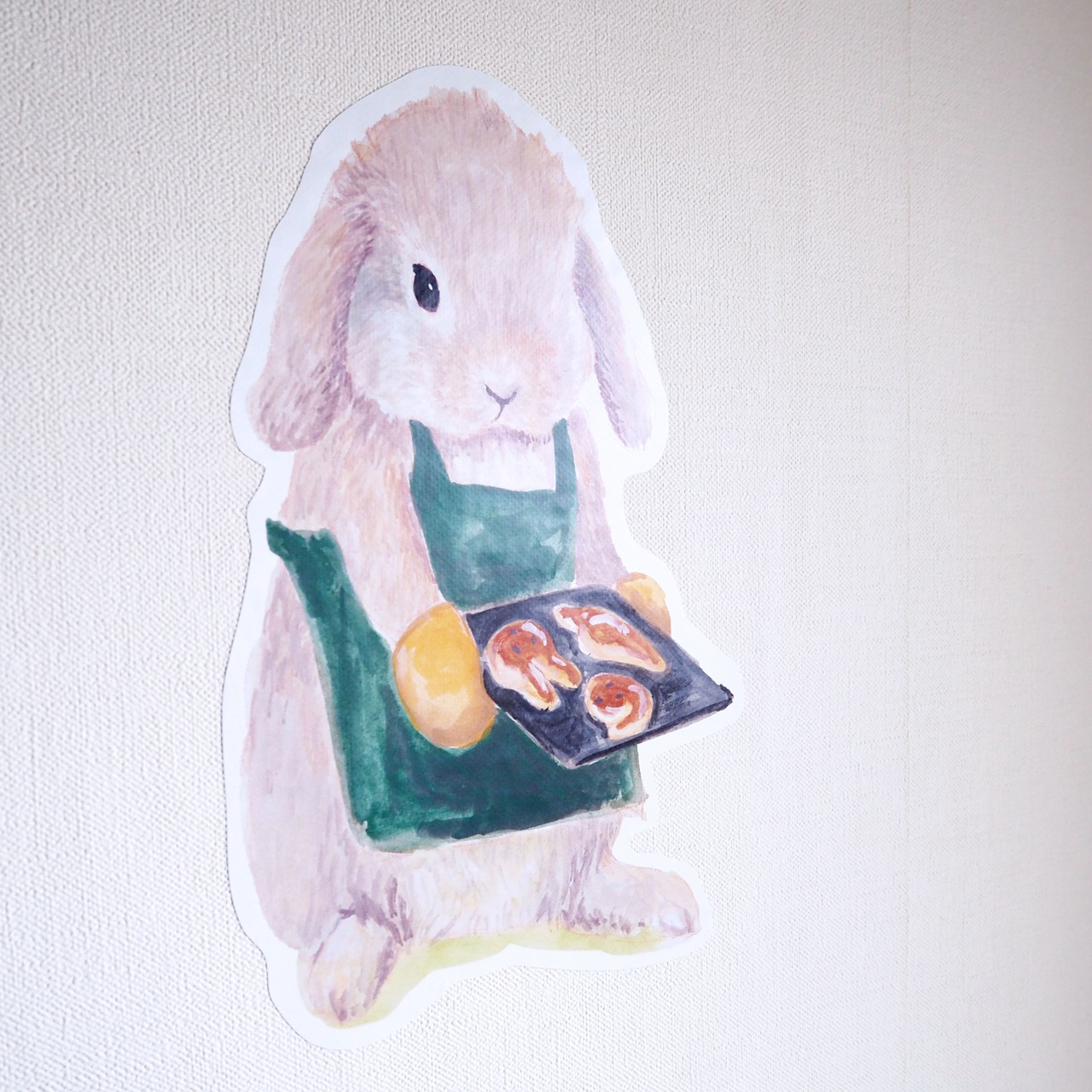 A4のポスターでも人気の、パンを焼くロップちゃんのイラストをウォールステッカーにしました。